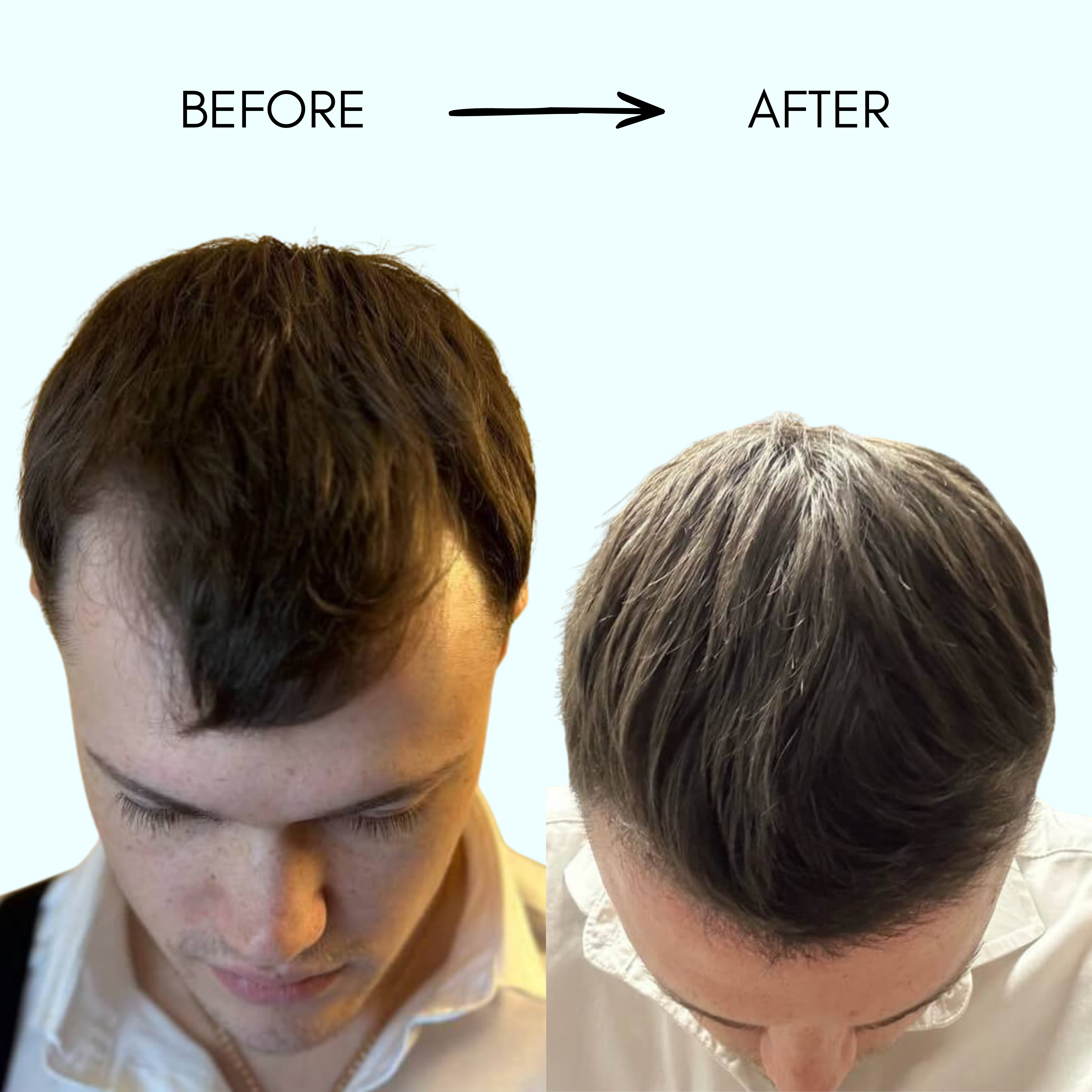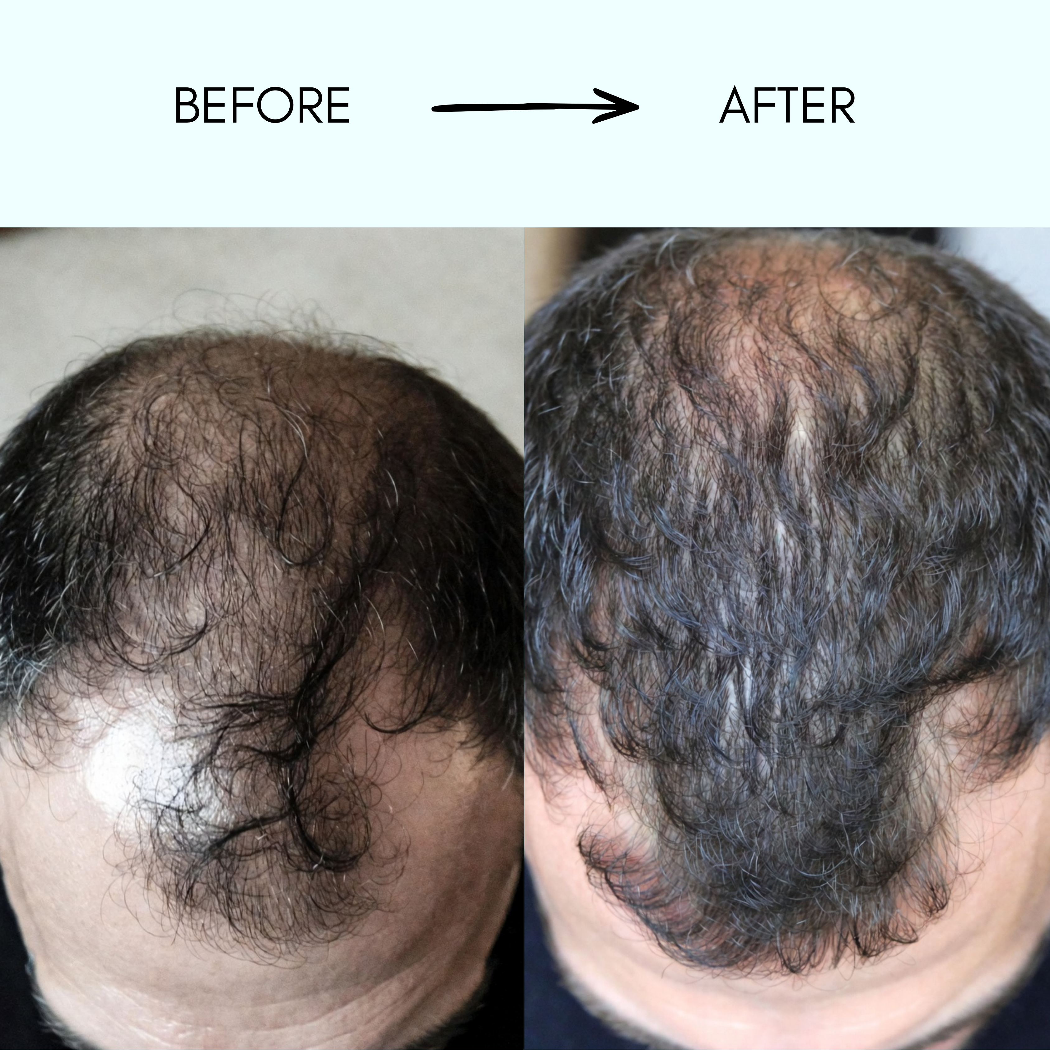 Our formula targets the core biological mechanisms behind hair loss.Key actives support follicle activity, scalp circulation, and the hair growth cycle — helping reduce shedding and create conditions for visible regrowth over time.